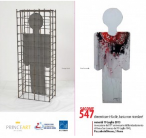 Artistic Installation – an idea by Daniele Arzenta, promoted by Association Culturale HORTI LAMIANI BETTIVO’ symbolizing the slaughter of children that takes place silently every day in the world . Curated by Romina Guidelli.